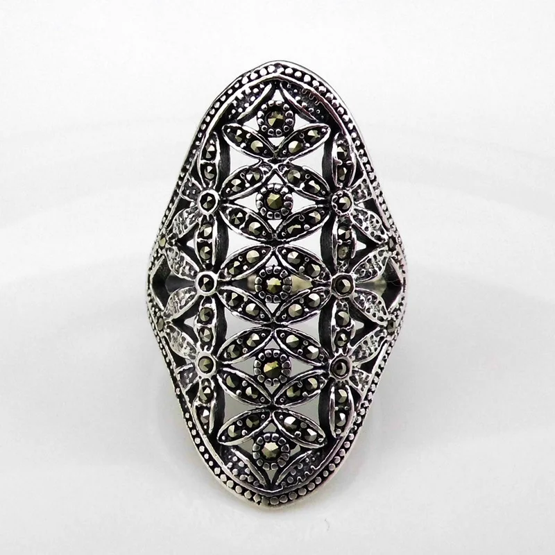 ORIGINAL FNJ 925 Silver Statement Flower Ring MARCASITE New Fashion Original S925 Sterling Silver Rings for